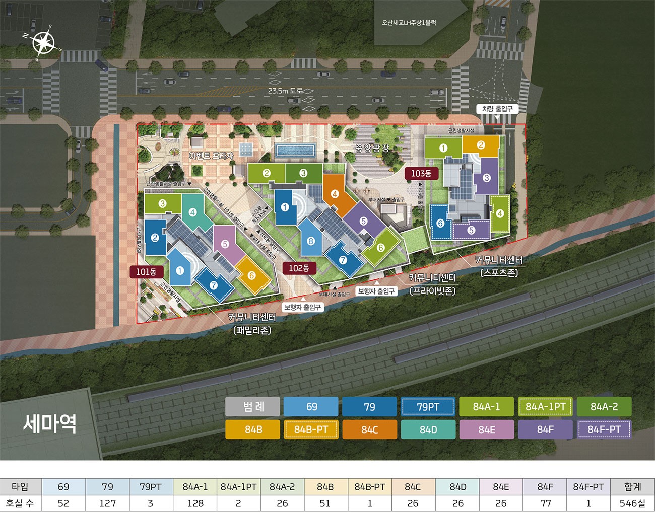 약 1.3만명 인구 및 5,100가구 미니신도시
